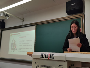 会议第二环节为专题党课环节,由张倧瑕、陈大红两位同志为支部同学做“纪念中国人民志愿军抗美援朝出国作战70周年”专题党课。张倧瑕同志结合习近平总书记在纪念中国人民志愿军抗美援朝出国作战70周年大会上的讲话,就“新时代纪念中国人民志愿军抗美援朝出国作战、弘扬抗美援朝精神的背景”、“抗美援朝出国作战历史回顾”以及“抗美援朝精神的内涵及意义”三个问题进行介绍说明。在介绍完抗美援朝出国作战的背景与战争过程后,张倧瑕同志指出,抗美援朝精神的内涵是指“祖国和人民利益高于一切、为了祖国和民族的尊严而奋不顾身的爱国主义精神”、“英勇顽强、舍生忘死的革命英雄主义精神”、“不畏艰难困苦、始终保持高昂士气的革命乐观主义精神”、“为完成祖国和人民赋予的使命、慷慨奉献自己一切的革命忠诚精神”以及“为了人类和平与正义事业而奋斗的国际主义精神”,这一伟大精神为我们弘扬爱国主义精神、进行具有许多新的历史特点的伟大斗争以及维护世界和平与人类进步事业提供了强大动力。随后,陈大红同志就“新时代如何弘扬抗美援朝精神”和“抗美援朝出国作战的启示”两个问题进行讲解说明。对于新时代弘扬抗美援朝精神的问题,陈大红同志提出,应坚持四个“无论”:无论时代如何发展,都要具有砥砺不畏强暴、反抗强权的民族风骨;无论时代如何发展,都要汇聚万众一心、勠力同心的民族力量;无论时代如何发展,都要锻造舍生忘死、向死而生的民族血性;无论时代如何发展,都要激发守正创新、奋勇向前的民族智慧。对于抗美援朝出国作战启示的问题,陈大红同志指出,铭记伟大胜利,推进伟大事业,应做到五个“必须”:必须坚持中国共产党领导,把党锻造得更加坚强有力;必须坚持以人民为中心,一切为了人民、一切依靠人民;必须坚持推进经济社会发展,不断壮大我国综合国力;必须加快推进国防和军队现代化,把人民军队全面建成世界一流军队;必须维护世界和平和正义,推动构建人类命运共同体。